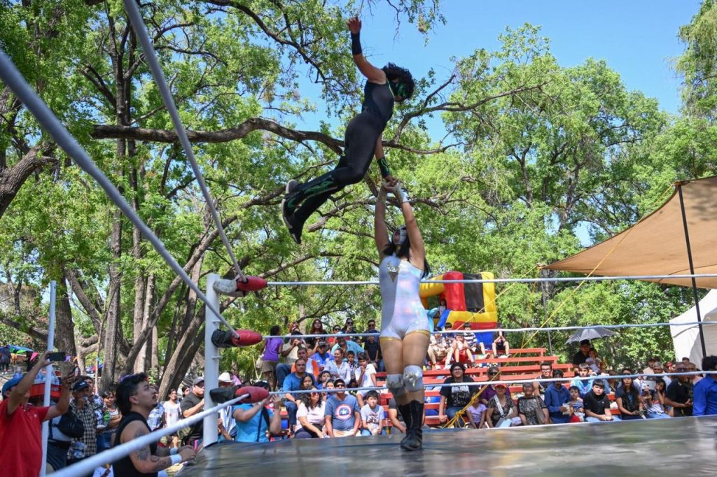 «Hagamos de Victoria un atractivo turístico para la diversión y convivencia familiar» invitó Gattás Báez a mujeres, hombres, jóvenes y niños que llenaron la pista de baile y graderío para disfrutar de llaves y lances aéreos de los gladiadores enmascarados.
