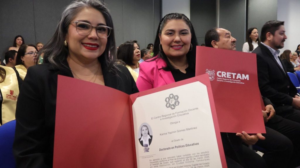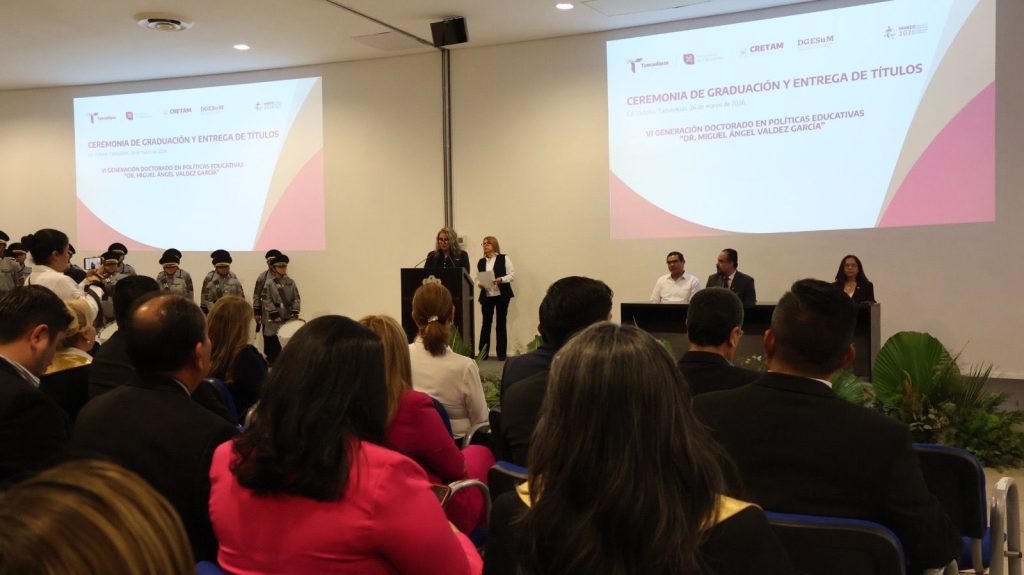 Ciudad Victoria, Tamaulipas.– El Centro Regional de Formación Docente e Investigación Educativa (CRETAM) realizó la graduación de la sexta generación del Doctorado en Políticas Educativas (DPE), así como la entrega de títulos de posgrado a egresadas y egresados que concluyeron este programa de formación.