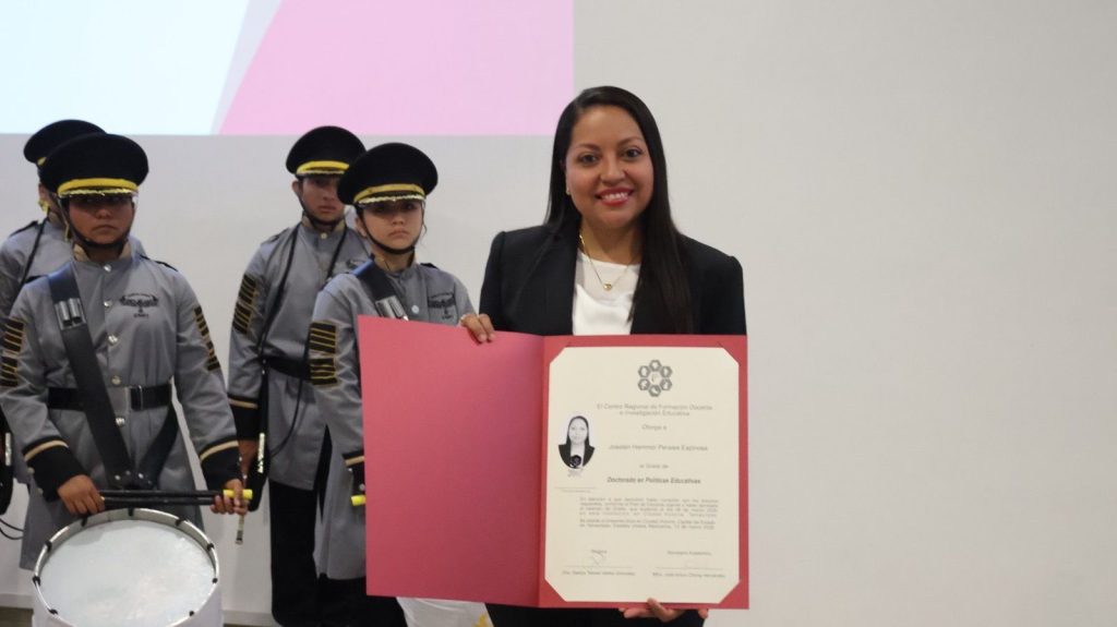 Durante la ceremonia, se hizo entrega de títulos a 18 egresadas y egresados que cumplieron con los requisitos establecidos para la obtención del grado de Doctorado en Políticas Educativas, además de la entrega de constancias a 14 integrantes de la sexta generación, quienes concluyeron formalmente sus estudios de este posgrado.