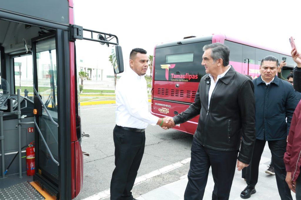 Ciudad Victoria, Tamaulipas.- El gobernador Américo Villarreal Anaya supervisó las seis unidades que integran la ruta Conecta y estimó que el próximo mes de mayo se pondrá en operación una primera etapa de este nuevo sistema de transporte público en Ciudad Victoria, para posteriormente ampliarlo a otros municipios del Estado.