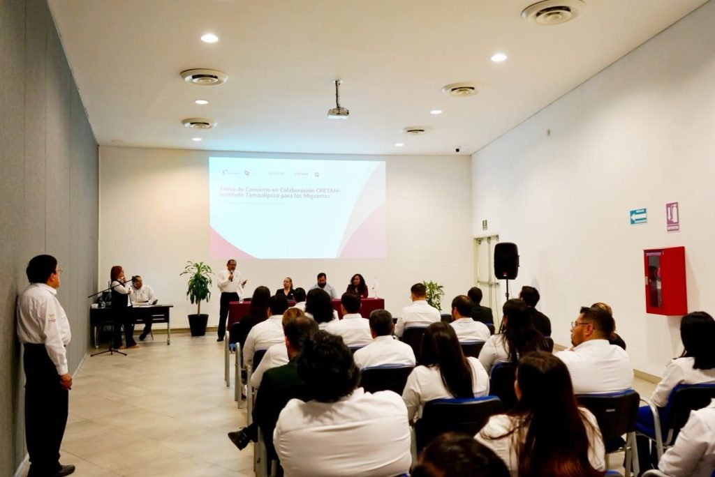 Ciudad Victoria, Tamaulipas.– El Instituto Tamaulipeco para los Migrantes (ITM) y el Centro Regional de Formación Docente e Investigación Educativa (CRETAM) formalizaron un convenio de colaboración orientado al desarrollo de investigaciones, programas de capacitación y estrategias de divulgación, con el propósito de fortalecer la atención educativa, social y humanitaria de las personas en contexto de movilidad, así como la profesionalización del personal vinculado a este fenómeno.